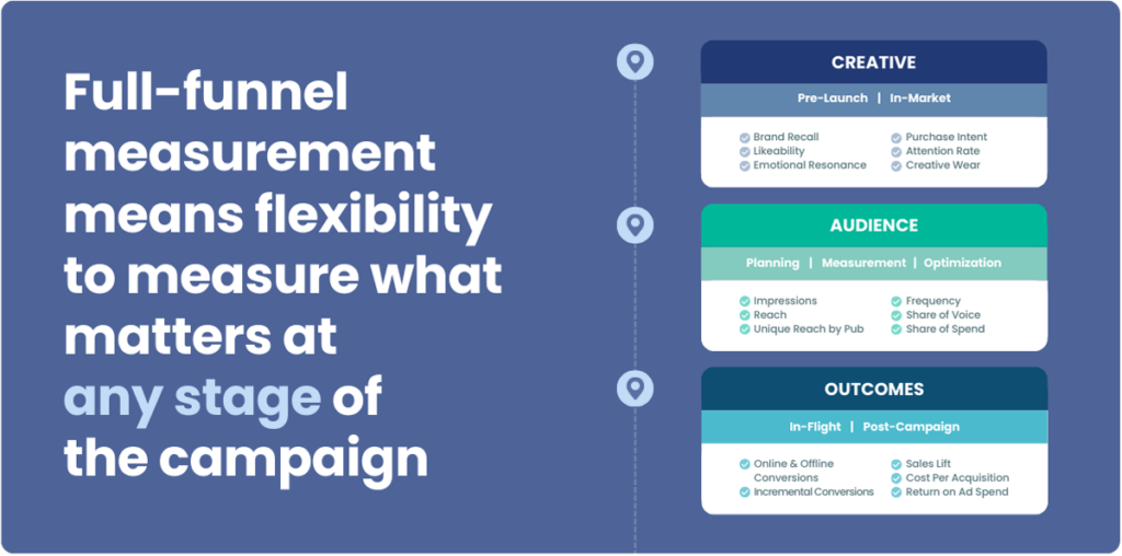 The key is having a measurement solution that uses the ad as the anchor. It’s the only constant across the full campaign lifecycle. The ad is what creative teams build, what media teams place, and what drives consumer action. Not the program. Not the platform. The ad itself.