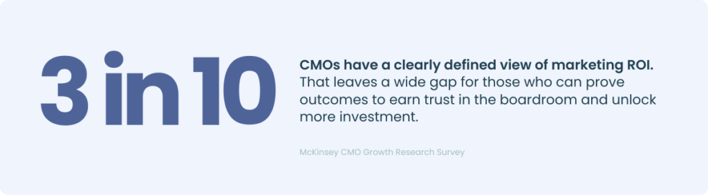 Less than one-third of CMOs feel confident in their ROI data. That’s a massive credibility gap. And without clear proof of business impact, marketing budgets stay vulnerable no matter how hard you work.