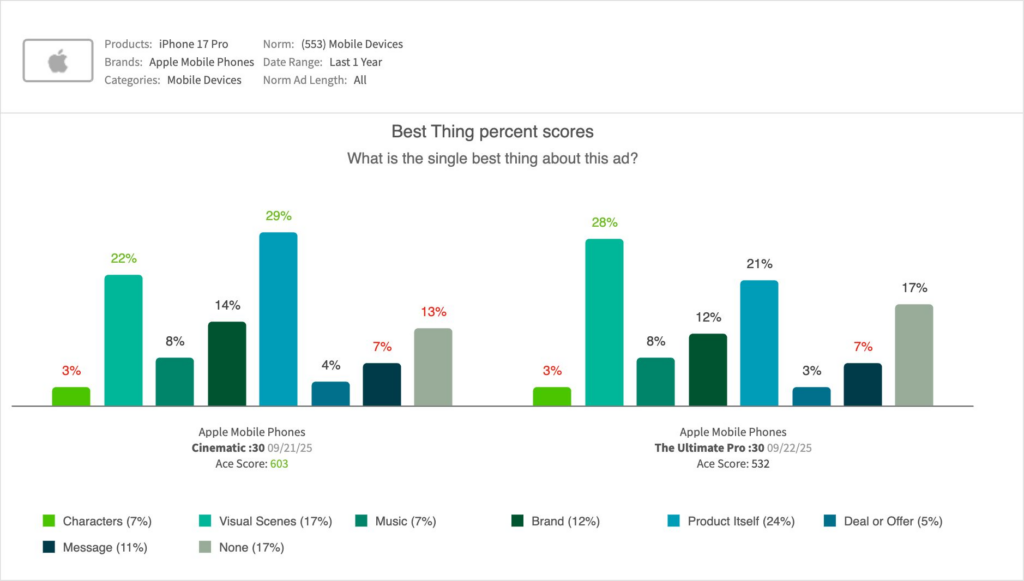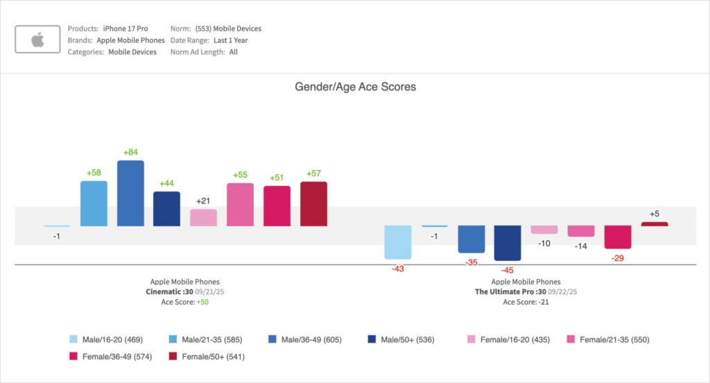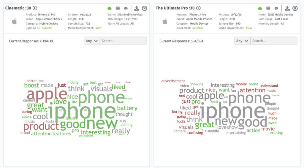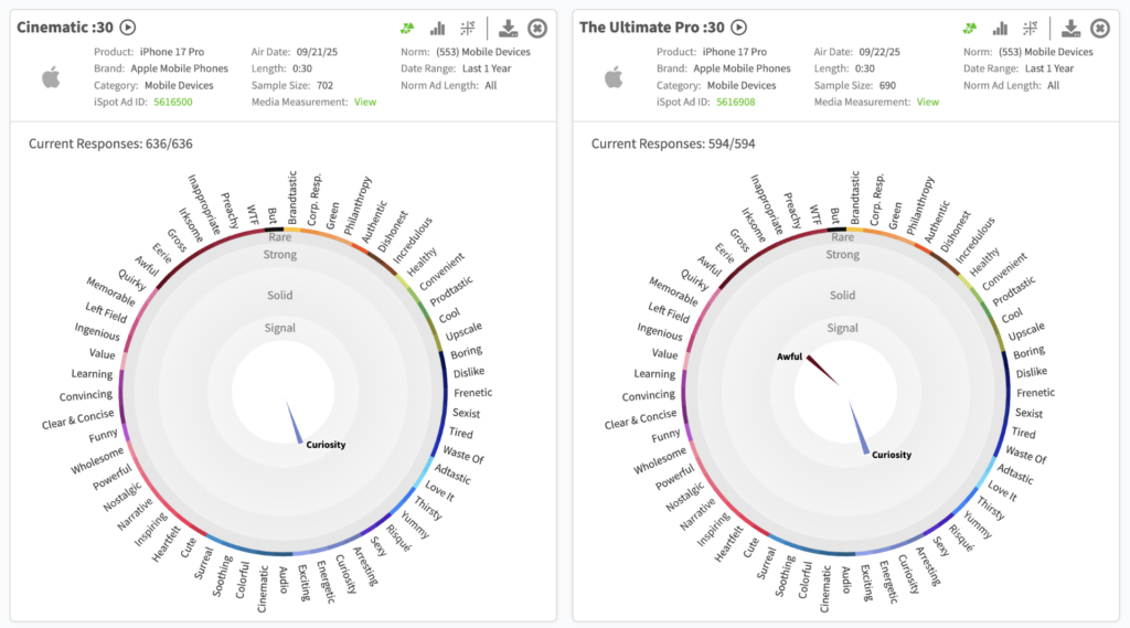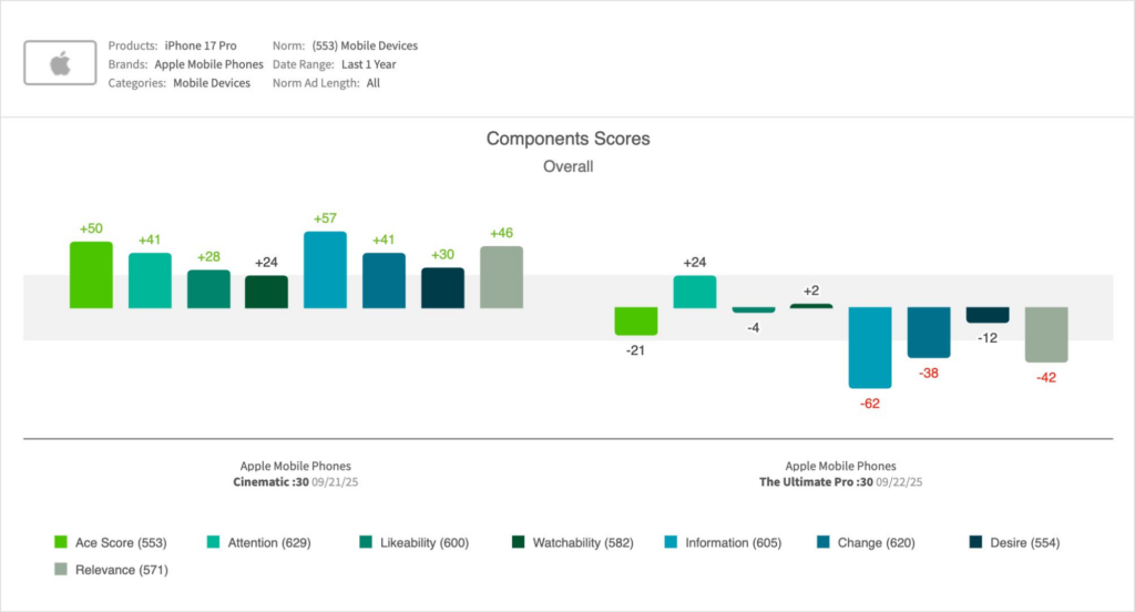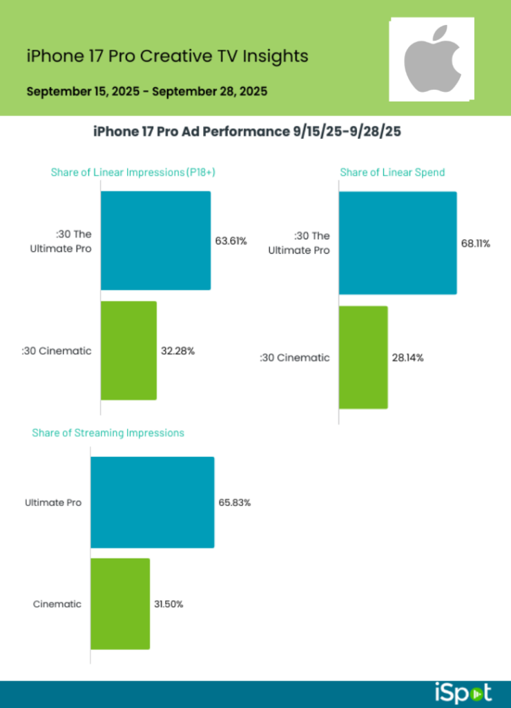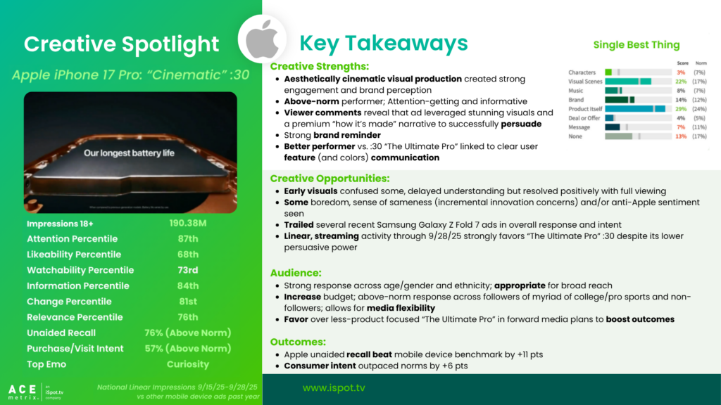 Here’s what iSpot’s Creative Assessment platform revealed on actual viewer response to the :30 iPhone 17 Pro launch spots.