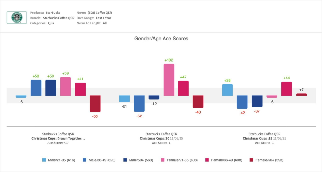 Here’s what iSpot’s Creative Assessment platform revealed on actual viewer response to Starbucks’ holiday ad campaign.