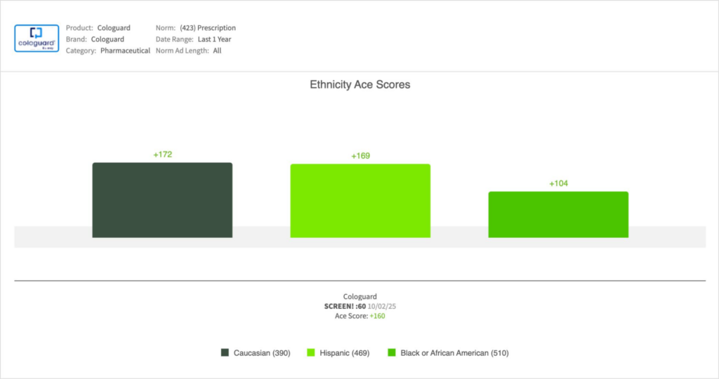 • “Screen!” also delivered performance that outpaced prescription norms by triple digits across ethnicity, underscoring the potential here: