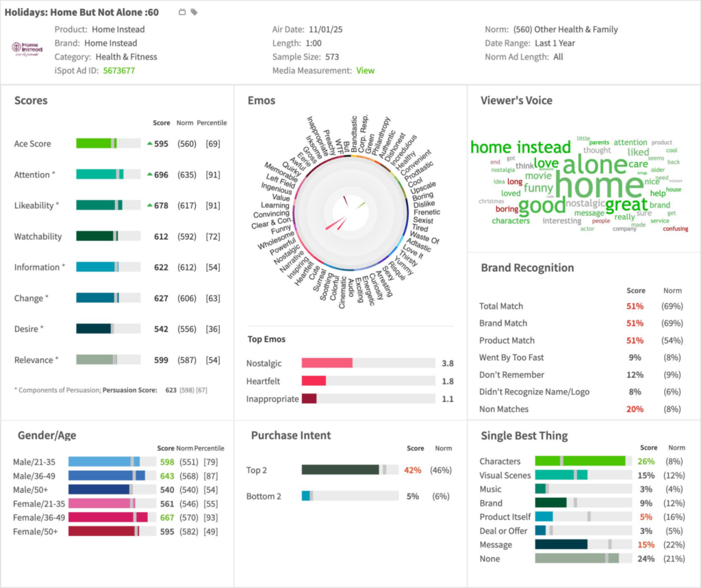 Here’s what iSpot’s Creative Assessment platform revealed on actual viewer response to the :60 spot.
