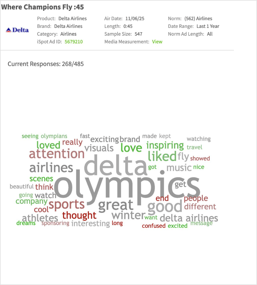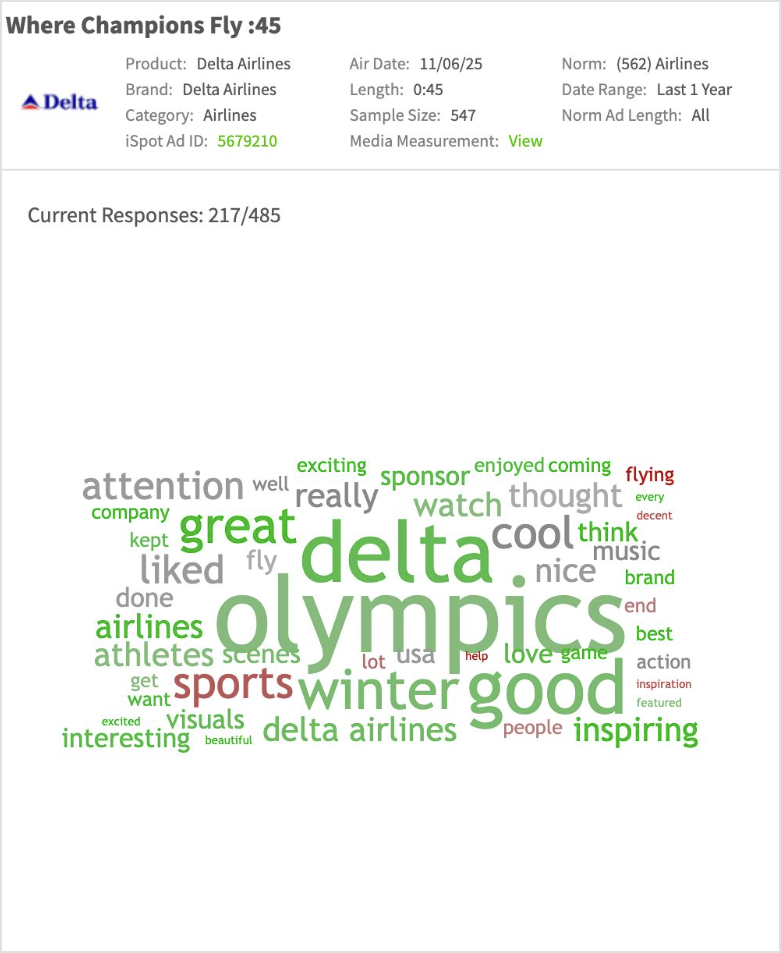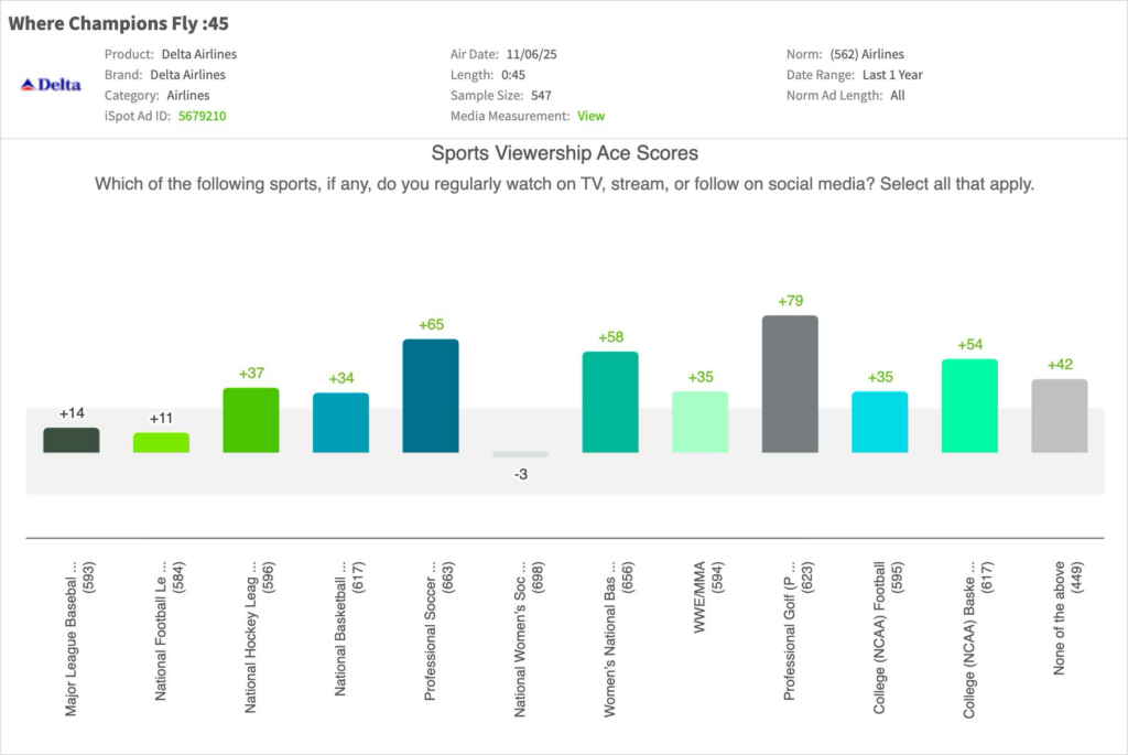 - In contrast to “We Measure,” some viewers couldn’t see themselves in the narrative, suggesting a tagline or messaging that more directly connects everyday travelers to the Olympic journey and/or the Delta lifestyle.