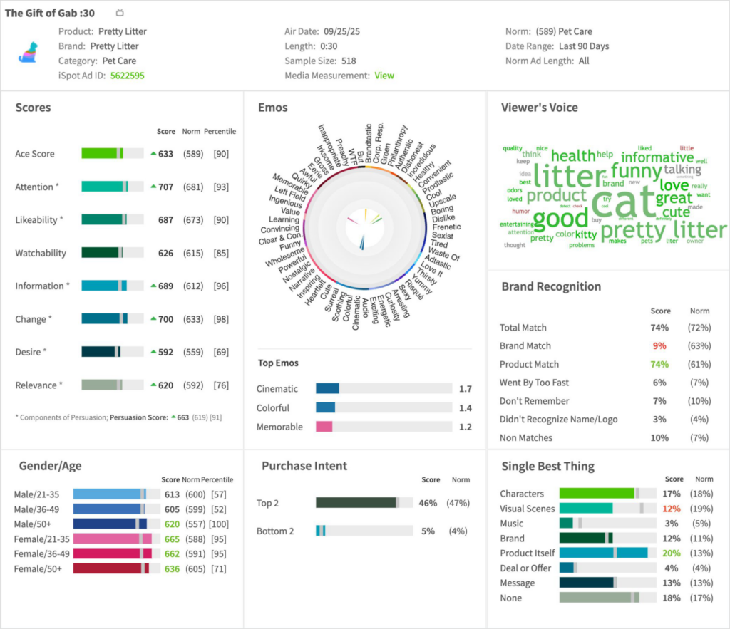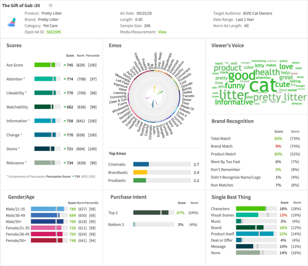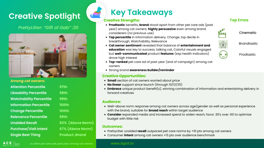 Here’s what iSpot’s Creative Assessment platform revealed on actual viewer response among cat owners to the spot.