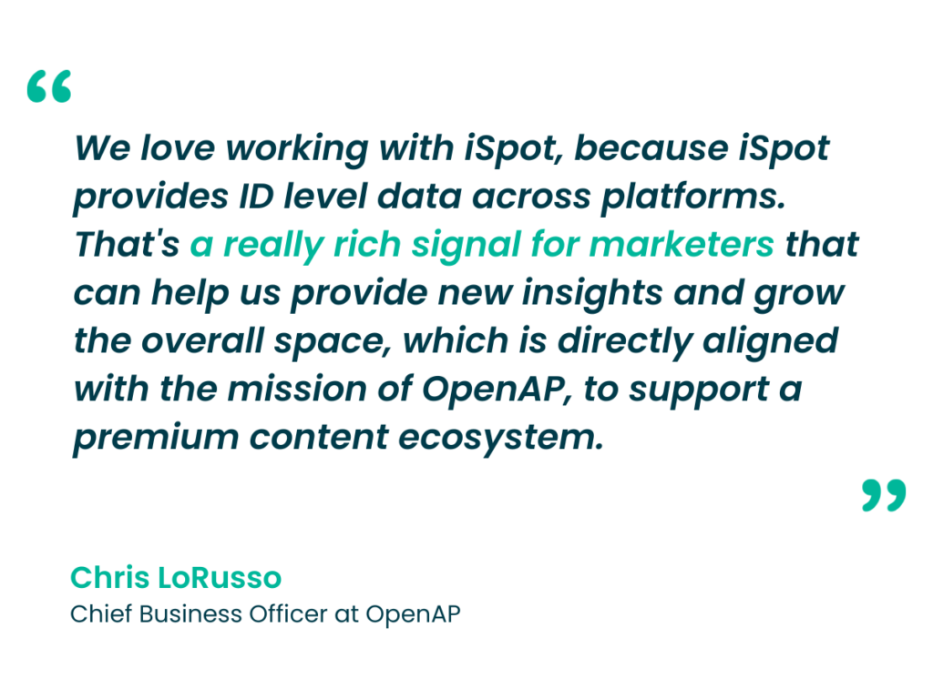 For OpenAP, the endgame is clear: grow the overall market for data-driven advertising. By unifying measurement in a world of increasing fragmentation, OpenAP and iSpot combine forces to help advertisers plan, measure, and activate better. This brings more investment into the space, which ultimately supports the very premium content ecosystem they set out to champion.