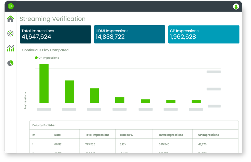 Streaming Verification brings critical streaming ad performance metrics into a single dashboard within Unified Measurement, helping advertisers quickly measure true audience reach and on-target delivery.. Publishers gain clear visibility into the streaming metrics that help demonstrate audience reach with trusted and transparent data aiding advertisers in fine-tuning ad delivery.